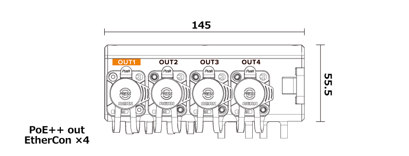 | 機器出力用コネクタ: | 4 x EtherCON PoE++ |